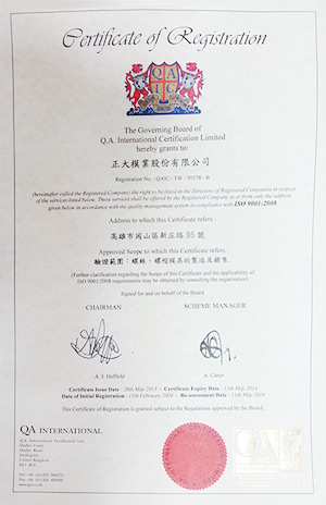 Home » CHENG TA DIES Group » Quality Control Quality Control Customer First 、 Excellent Quality 、 Lead technic 、 Sincere Service ISO 9001-2008